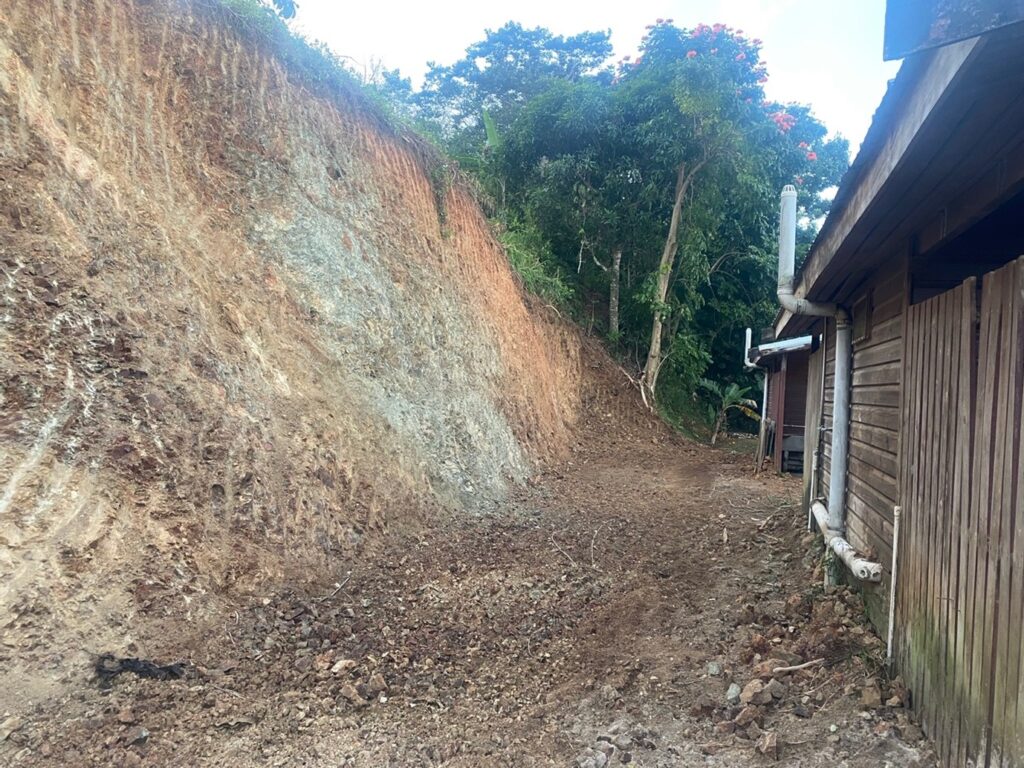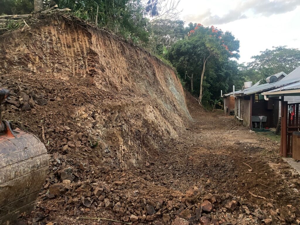 Removal of an unstable section of the hill to create additional space behind the staff quarters.